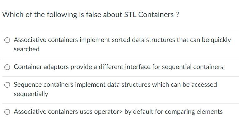 Solved Which Of The Following Is False About Stl Containers Chegg Com
